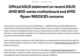 619: Socket774 (ワッチョイ 53c8-qFKd) 2026/01/24(土) 00:38:14.29 ID:lZvWTbwi0ASUSは、AM5 800シリーズマザーボードにおけるAMD Ryzen 7 9800X3Dの不具合報告について、内部調査を開始しました。ASUS、AM5 800シリーズマザーボードにおけるAMD Ryzen 7 9800X3Dの不具合報告に関する初の公式…